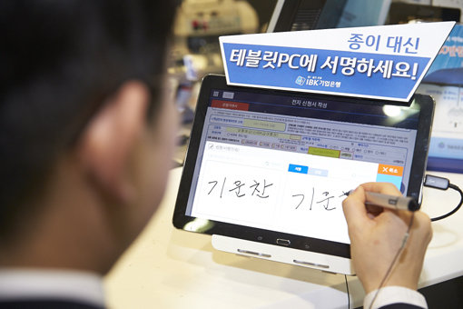 기업은행 측은 “‘IBK전자문서시스템’을 모든 창구에 적용하면 연간 45억 원의 비용절감이 발생한다”며 “창구에 설치된 태블릿PC를 활용해 다양한 빅데이터 서비스를 제공하는 등 창구 업무 디지털화를 위해 지속 노력하겠다”고 했다.
