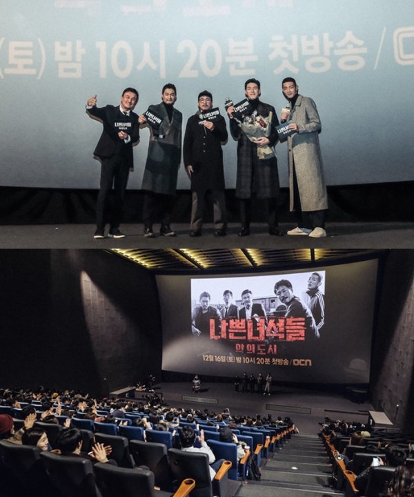 16일 밤, 첫 방송 되는 OCN 오리지널 ‘나쁜녀석들: 악의 도시’(극본 한정훈, 연출 한동화, 제작 스튜디오드래곤, 얼반웍스)가 지난 11일 저녁 7시 30분, 서울 영등포 CGV에서 배우와 시청자가 만나는 GV 시사회를 진행했다. 드라마의 주역인 ‘나쁜녀석들’ 5인방 박중훈, 주진모, 양익준, 김무열, 지수가 참석해 매서운 날씨에도 불구하고 현장은 뜨거운 열기로 가득 찼다.