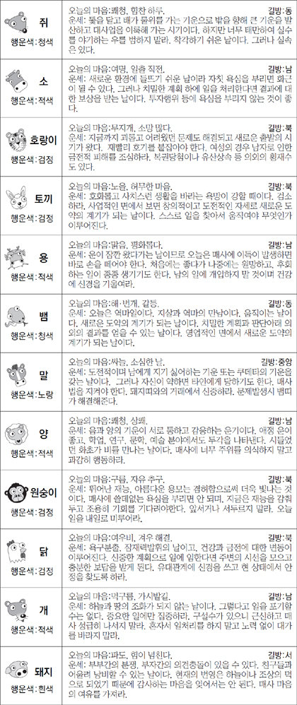 ■ 오늘의 운세|박경호의 운수 좋은 날