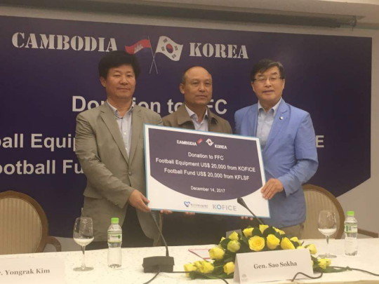 축구사랑나눔재단은 지난 14일 캄보디아 수도 프놈펜에서 사오소카 캄보디아 축구협회장, 이갑진 축구사랑나눔재단 이사장, 김용락 한국문화산업교류재단 사무국장이 참석한 가운데 유소년 축구 용품 및 지원금 전달식을 가졌다. 30여명의 현지 미디어와 기자회견을 갖고 힘찬 첫 발걸음을 시작했다.