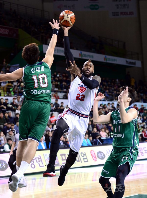 17일 원주종합체육관에서 열린 ‘2017-2018 정관장 프로농구’ 울산현대모비스와 원주DB 경기에서 현대모비스 블레이클리가 DB의 수비를 뚫고 골밑슛을 하고 있다.