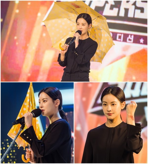이와 관련 오연서가 삼장 진선미의 트레이드마크인 노란 우산을 들고서 ‘오디션 무대’를 장악한 장면이 공개돼 이목을 끌고 있다. 극중 삼장 진선미가 아련함이 물씬 풍겨 나오는 표정으로 무대에서 노래를 부르고 있는 장면. 다른 오디션 참가자들이 화려한 복장을 하고 있는 것과는 달리, 진선미는 머리를 뒤로 넘겨 정갈하게 하나로 묶은 단정한 헤어스타일과 흐트러짐 없는 올블랙 의상의 패션 스타일을 선보여 눈길을 사로잡았다.