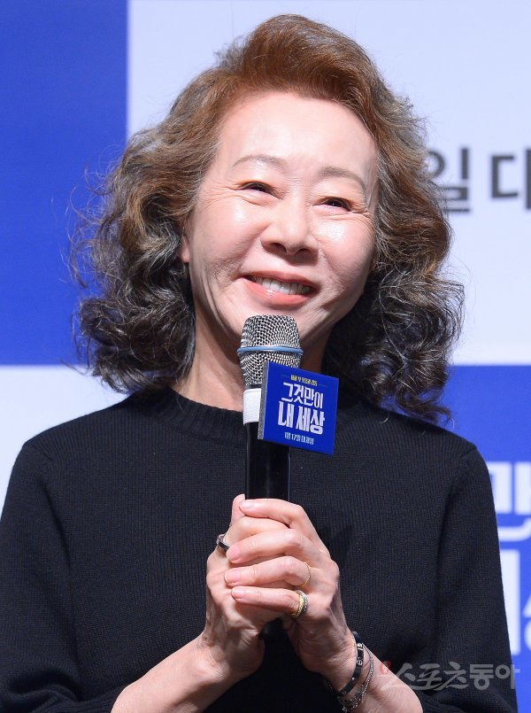 배우 윤여정이 18일 서울 강남구 압구정로에 위치한 CGV 압구정에서 열린 영화 ‘그것만이 내 세상’ 제작보고회에서 미소를 짓고 있다.