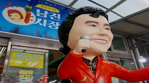 목포 남진야시장을 방문하면 제일 먼저 만나게 되는 트로트 가수 남진 조형물. 사진출처|랭킹스쿨 유튜브 화면 캡처