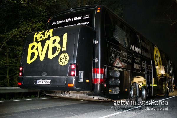 지난 4월 테러로 파손된 도르트문트 버스. 사진=게티이미지코리아