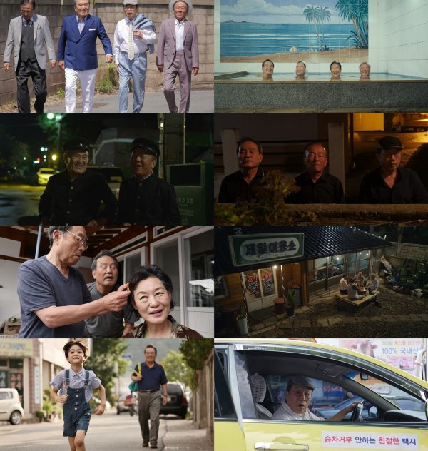 공개된 보도스틸은 양복을 함께 맞춰 입고 거리를 누비는 시니어벤져스 4인방의 모습부터 목욕탕에 몸을 담그고 있는 네 명이 얼굴만 밖으로 내밀고 있는 장면, 옛 교복을 꺼내 입고 웃음 짓는 영환(박인환)과 현식(임현식), 담벼락에 함께 서서 소변을 보는 영환, 현식, 순호(신구), 그리고 아내의 머리를 만져주고 있는 순호 등 각자의 캐릭터들이 지닌 개성과 매력이 담겨있다.