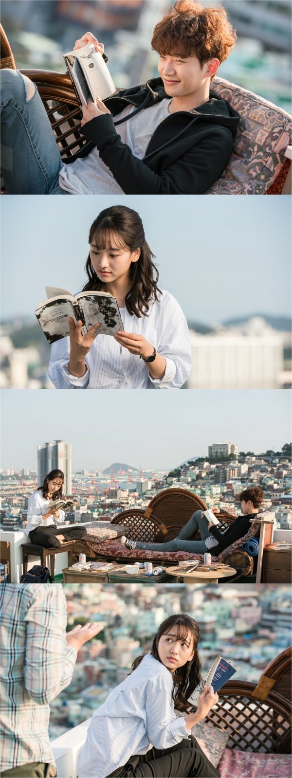 그저 책을 보고 있을 뿐임에도 이국적 분위기를 자아내는 풍광과 두 사람의 풋풋하면서도 사랑스러운 케미가 어우러지며 시선을 사로잡는다. 두 사람의 평화로운 분위기를 깨는 누군가의 등장으로 문수가 깜짝 놀라는 사진까지 공개되며 궁금증을 더한다.