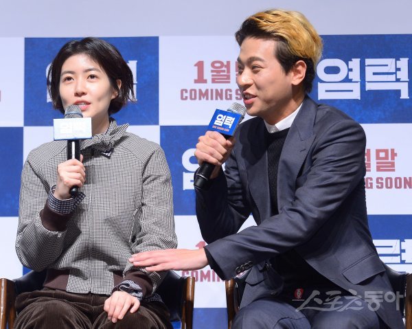 배우 심은경과 박정민(오른쪽)이 19일 서울 강남구 압구정로에 위치한 CGV 압구정에서 열린 영화 ‘염력’ 제작보고회에서 사회자의 질문에 답변하고 있다.