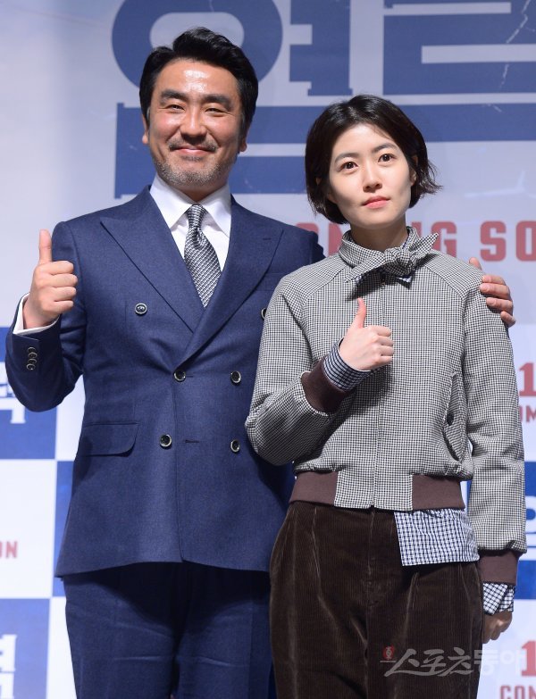 배우 류승룡과 심은경(오른쪽)이 19일 서울 강남구 압구정로에 위치한 CGV 압구정에서 열린 영화 ‘염력’ 제작보고회에서 포즈를 취하고 있다.
