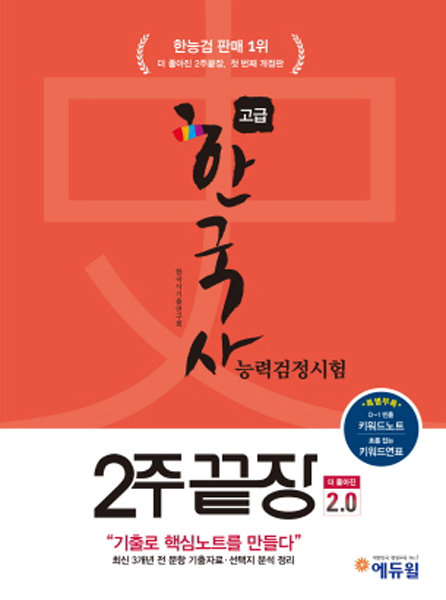 한편 에듀윌은 한국사능력검정시험을 2주 만에 합격할 수 있는 커리큘럼을 제공하는 ‘한국사능력검정시험 2주 끝장’ 교재를 출간 중이다. 온라인 서점 예스24에서 상당 기간 베스트셀러 1위를 차지한 바 있다.
