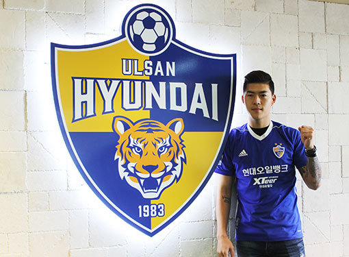 울산 현대로 이적한 김성주가 19일 클럽하우스 1층에서 기념촬영하고 있다. 박주호, 김성주에 이어 또 다른 대형 영입을 추진 중인 울산이 겨울이적시장에서 공격적인 행보를 보이고 있다. 사진제공 | 울산 현대