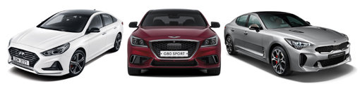 현대차그룹의 6개 차종이 ‘2017 굿디자인 어워드’에서 운송 디자인 자동차 부문 수상작으로 선정됐다. 사진은 쏘나타뉴라이즈, G80스포츠, 스팅어(왼쪽부터). 사진제공|제네시스