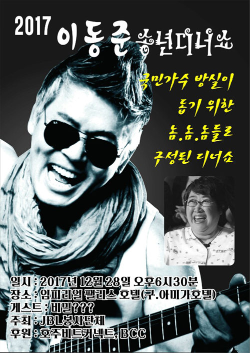 한편, 이동준의 방실이 돕기 자선 디너쇼는 오는 12월 28일 오후 6시 30분 서울 강남구 논현동 임패리얼 팰리스 호텔에서 열린다.