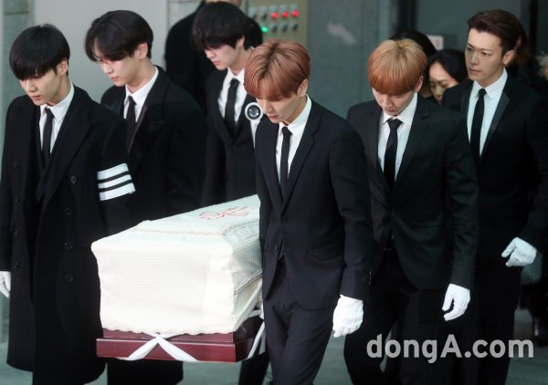 故 샤이니 종현은 지난 18일 스스로 생을 마감했다. 유서는 고인의 생전 절친이었던 디어클라우드 나인을 통해 공개됐다. 극심한 우울증으로 인한 괴로움을 호소하는 내용이었다. 샤이니 멤버들이 상주를 맡은 가운데 장례식이 진행됐으며 21일 발인이 엄수됐다. 동료 연예인들의 눈물의 배웅 속에 故 종현은 영면에 들어갔다.
