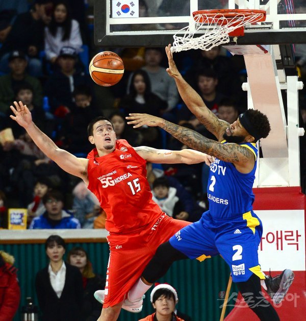 25일 서울 잠실학생체육관에서 열린 ‘2017-2018 정관장 프로농구’ 서울삼성과 서울SK 경기에서 삼성 커밍스가 SK 김민수의 골밑슛을 블록으로 막아내고 있다.