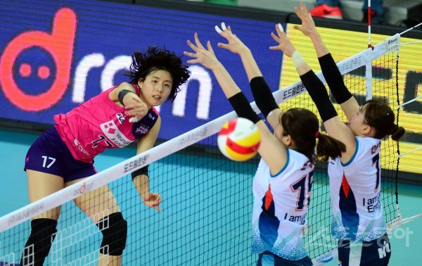 25일 인천 계양체육관에서 ‘2017-2018 도드람 V리그’ 인천 흥국생명과 서울 GS칼텍스의 경기가 열렸다. 흥국생명 이재영이 GS칼텍스 블로커를 피해 스파이크를 날리고 있다.