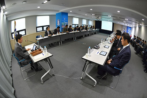 대한축구협회가 26일 축구회관에서 2017년도 제3차 이사회를 열고 러시아월드컵 본선 진출에 성공한 대표팀의 포상을 논의하고 있다. 사진제공 ㅣ 대한축구협회