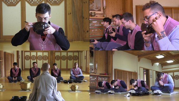 ‘어서와 한국은 처음이지?’ 로빈과 프랑스 친구들이 전등사에서 발우공양을 경험했다.