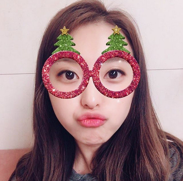 사진 속에는 어플을 통해 크리스마스 트리 장식이 얹어진 안경을 끼고 귀여움을 뽐내고 있는 보라의 모습이 담겨있다.