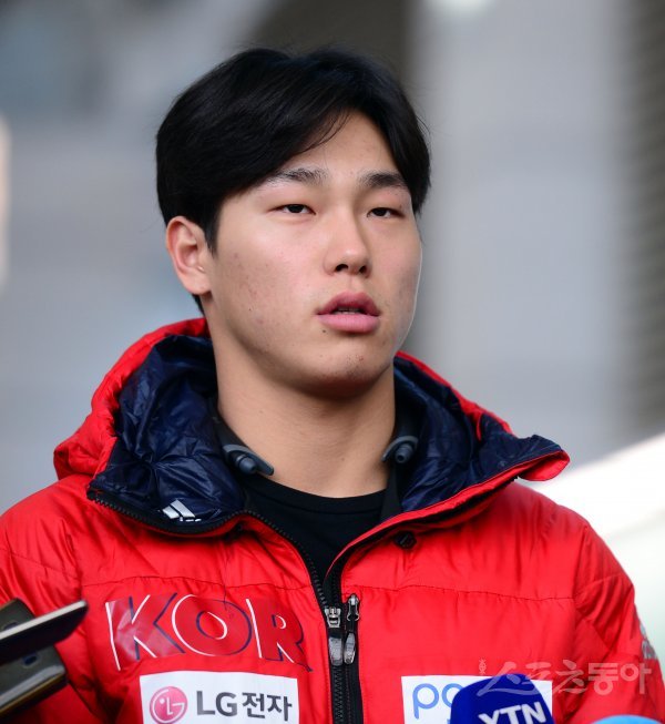 스켈레톤 세계랭킹 1위 윤성빈이 30일 인천국제공항을 통해 내년 초 국제봅슬레이스켈레톤경기연맹(IBSF) 월드컵 6차 대회가 열리는 독일로 출국했다. 윤성빈이 출국에 앞서 취재진과 인터뷰를 하고 있다.