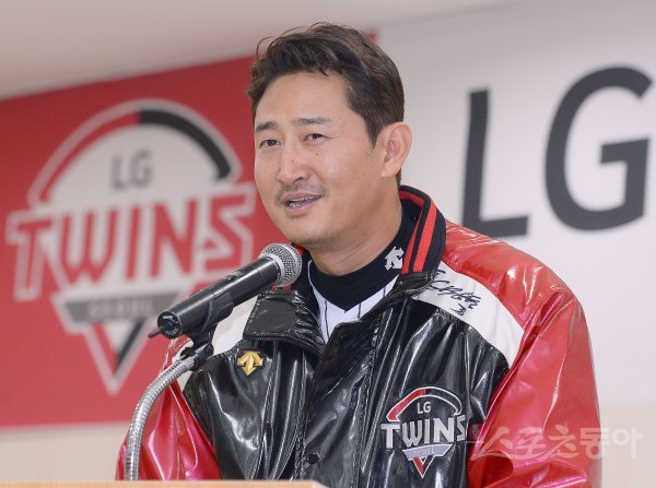 5일 서울 잠실야구장에서 LG 트윈스의 2018년 시무식이 진행됐다. 주장으로 선임된 LG 박용택이 인사말을 하고 있다. 잠실 | 김진환 기자 kwangshin00@donga.com