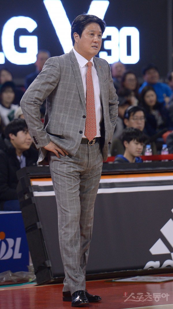 5일 서울 잠실학생체육관에서 열린 ‘2017-2018 정관장 프로농구’ 원주DB와 서울SK 경기에서 SK 문경은 감독이 굳은 표정으로 경기를 지켜보고 있다.
