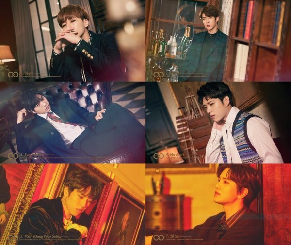 더불어 각 트랙별 하이라이트 메들리와 함께 인피니트 여섯 멤버의 업그레이드된 비주얼과 고급스러운 매력을 접할 수 있는 앨범 재킷 이미지들도 공개돼 팬들의 이목을 집중시키고 있다.