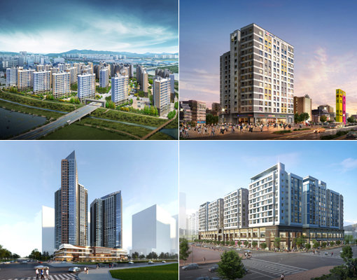 남악 센트레빌 리버파크-성남모란역 지웰에스테이트 오피스텔-민락2지구 제일풍경채 센텀-송도 랜드마크 푸르지오 시티(왼쪽 상단부터 시계 방향으로).