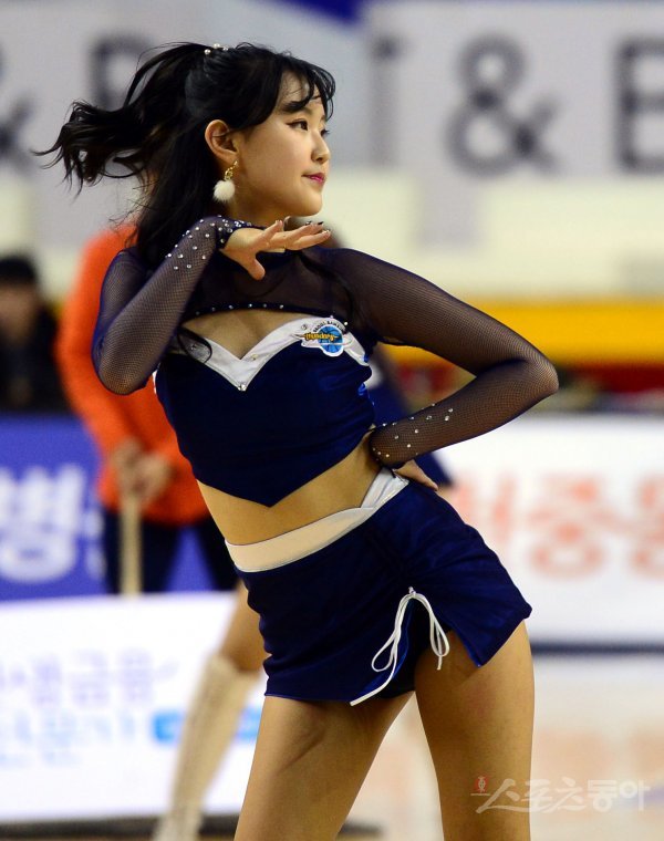 8일 경기도 용인실내체육관에서 열린 ‘신한은행 2017-2018 여자프로농구’ 용인 삼성생명과 인천 신한은행의 경기에서 삼성생명 치어리더가 화려한 공연을 선보이고 있다.