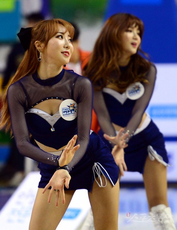 8일 경기도 용인실내체육관에서 열린 ‘신한은행 2017-2018 여자프로농구’ 용인 삼성생명과 인천 신한은행의 경기에서 삼성생명 치어리더가 화려한 공연을 선보이고 있다.