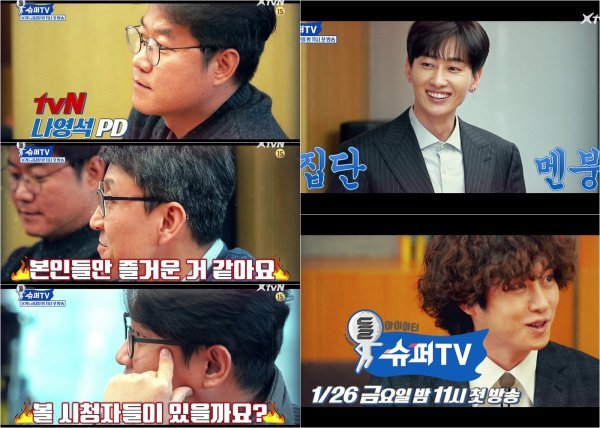 26일 밤 11시 첫 방송을 앞둔 \'슈퍼TV’(기획 이예지/ 연출 천명현/ 작가 황선영)가 슈주의 스펙터클하고 심장 쫄깃한 2차 PT 현장을 공개했다. 앞서 나영석 PD가 "내가 해보고 싶네요"라며 극찬을 쏟아냈던 모습과 달리 이번에는 냉정한 평가가 난무하며 슈퍼주니어 멤버들을 쥐락펴락하는 모습이 그려져 그 배경에 관심이 모아지고 있다.