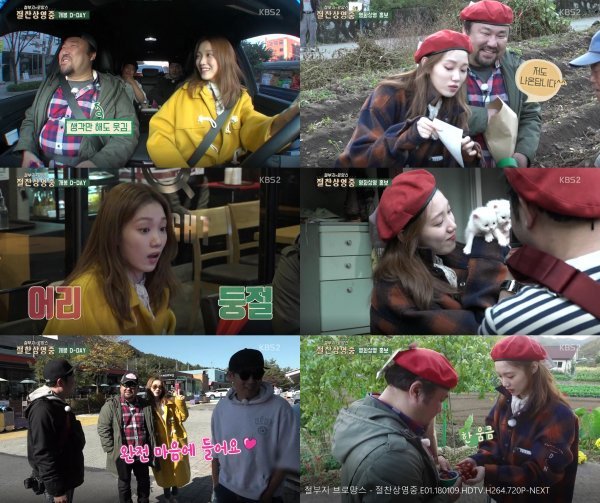 지난 9일 첫 방송된 KBS2 새 예능 프로그램 ‘절찬상영중-철부지브로망스’에서는 이성경이 성동일, 고창석, 이준혁과 함께 영화 불모지인 충북 단양의 한 마을로 향하는 모습이 그려졌다. 이들은 영화 관람이 어려운 마을 어르신들을 위해 ‘낭만극장’ 개관을 하나부터 열까지 준비했다.