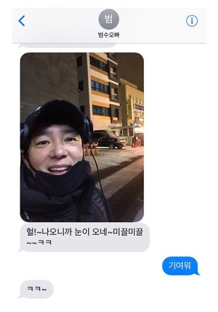 이범수와 아내 이윤진의 메시지를 캡쳐한 것으로 보이는 사진에는 이범수의 퇴근길 인증샷이 담겨 있다. 특히 다정한 부부의 대화가 네티즌들의 눈길을 끌었다.