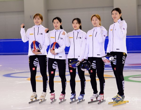 10일 충북 진천 국가대표선수촌에서 열린 2018 평창동계올림픽대회 G-30 미디어데이에서 쇼트트랙 여자대표팀이 기념촬영을 하고 있다.