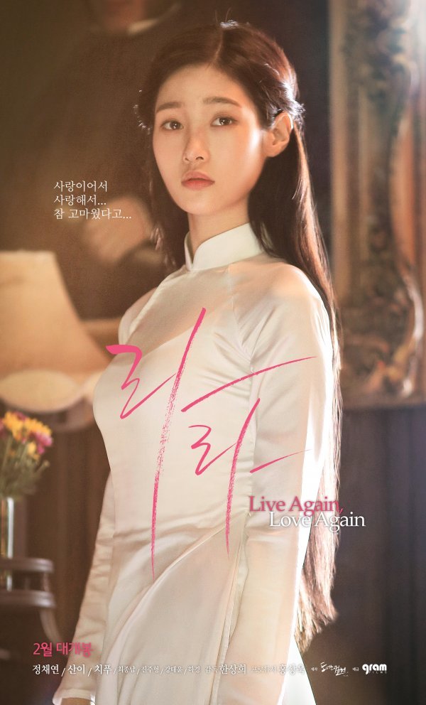 2월 개봉 소식을 전한 영화 ‘라라’가 독보적 단아미를 풍기는 정채연의 캐릭터 포스터를 함께 공개했다. 일단 베트남 전통 의상 아오자이를 입고 선 정채연은 자체발광 그 자체라 해도 과언이 아니다. 그녀는 순백의 웨딩드레스를 입은 새 신부마냥 단아한 미를 한껏 드러내고 있다. 하지만 그녀의 눈빛은 왠지 모르게 슬퍼 보여, 보는 이로 하여금 영화에 대한 궁금증을 자아내게 만든다. 정갈하게 적은 듯한 국문 타이틀은 하단의 ‘Live Again, Love Again’란 영제가 부연 설명을 하고 있다. 실제 ‘라라’는 해당 영제에서 대문자를 따온 약어라고. 끝으로 카피를 대신하는 ‘사랑이어서, 사랑해서, 참 고마웠다고’란 윤희(정채연)의 극 중 대사 또한 그녀의 표정과 완벽한 조화를 이루며, 애잔함을 전한다.