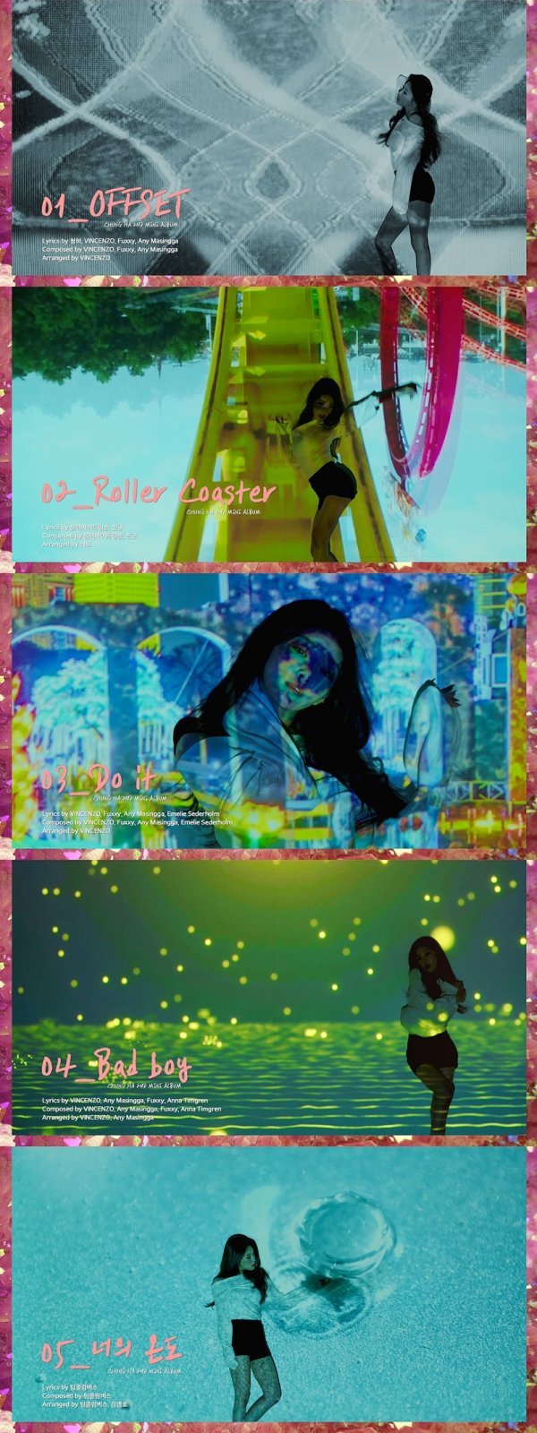영상에는 이번 앨범의 주제를 가장 잘 함축하고 있는 인트로 곡 ‘Offset’을 시작으로 가요계 대표 ‘히트곡 제조기’ 블랙아이드필승이 프로듀싱한 타이틀곡 ‘롤러코스터(Roller Coaster)’가 빠르게 울려 퍼지며 화면을 전환시킨다. 90년대 특유의 바이브가 현대적으로 재해석돼 짧지만 멈출 수 없게 흥을 돋운다.