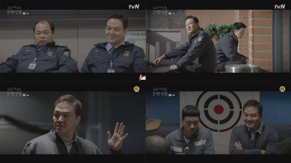 11일 방송된 ‘슬기로운 감빵생활’ 15회에서는 팽부장(정웅인 분)이 2상6방 수용자를 비롯, 교도관들과 동고동락하는 장면이 그려졌다. 가석방 대상자로 뽑힌 장기수(최무성 분)를 보며 덩달아 눈시울 붉어지던 팽부장은 언제 그랬냐는 듯 한양(이규형 분)과 유대위(정해인 분)에게 “어이 유치부! 한 번만 더 싸우면 아저씨가 때찌한다”라며 약을 올려 웃음을 자아냈다