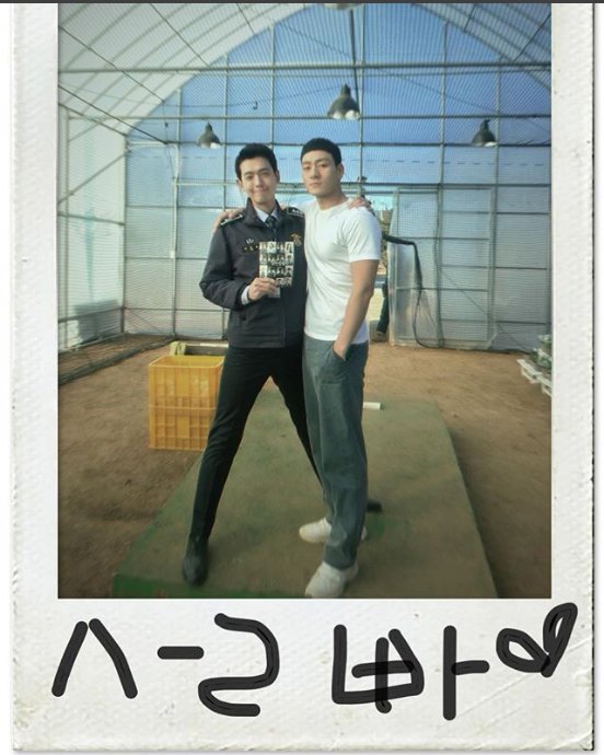 정경호는 12일 자신의 인스타그램에 "최종회....제혁이 준호 #슬빵하세요 #슬기로운감빵생활"라는 글과 함께 동료 박해수와의 사진을 게재했다.