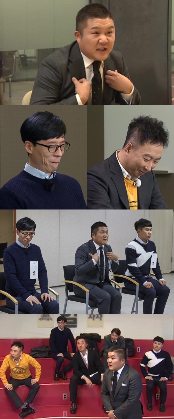 공개된 사진 속 조세호는 면접관들 앞에서 열정적으로 자기소개를 하고 있고, 유재석과 박명수는 그의 소개를 듣고 웃음을 참기 위해 안간힘을 쓰고 있어 웃음을 자아낸다. 유재석은 얼굴의 근육을 모두 활용해 터진 웃음을 삼키고 있고, 박명수는 차마 고개를 들지 못하고 있어 보는 이들을 폭소케 만든다.