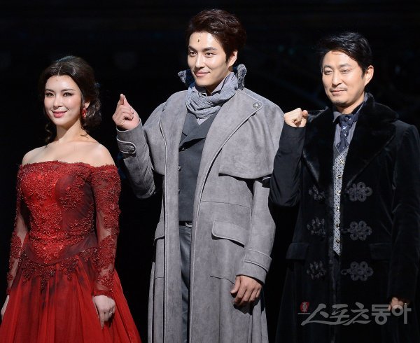 왼쪽부터 안나 역의 정선아, 브론스키 역의 민우혁, 카레닌 역의 서범석.