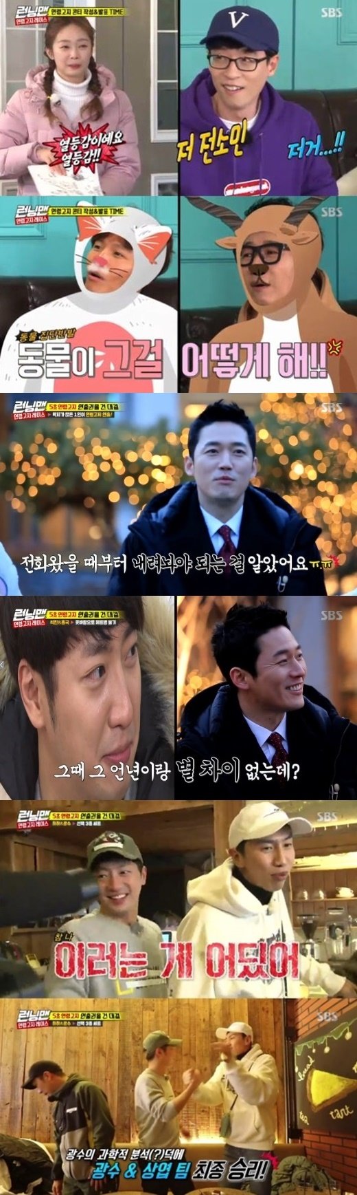 특히, 드라마 ‘돈꽃’으로 인기를 끌고 있는 장혁은 촬영 중임임에도 ‘절친’ 장혁을 위해 콧바람으로 찌그러진 페트병 펴기에 도전해 남다른 의리를 과시했다. 비록 김종국, 지석진에게 아쉽게 패했지만, “언년아~” 원조를 들려주며 웃음을 자아냈다. 이밖에 유재석은 전소민과 팀이 되어 ‘일리있는 노래방’ 대결을 개그맨 김영철과 펼쳤고, 송지효와 양세찬은 개그우먼 박나래, 하하와 이광수는 배우 이상엽을 만났다.