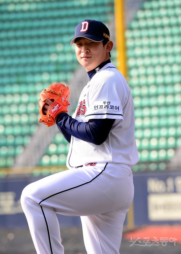 기념식을 마치고 새롭게 합류한 두산 최대성이 포토타임을 갖고 있다.
