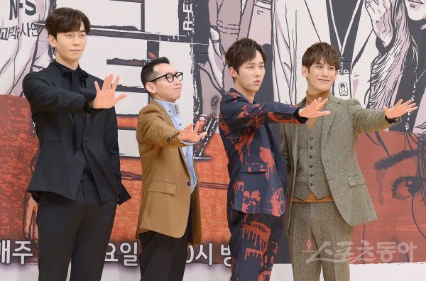 배우 신성록과 봉태규, 윤종훈, 박기웅(왼쪽부터)이 15일 서울 양천구 목동 SBS에서 열린 새 수목드라마 ‘리턴’ 제작발표회에서 포즈를 취하고 있다.
