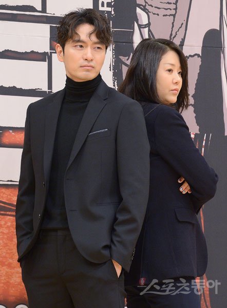 15일 열린 드라마 ‘리턴’ 제작발표회에서 서로 등을 맞대고 있는 이진욱(왼쪽)과 고현정. 김진환 기자 kwangshin00@donga.com