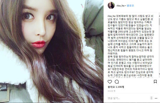 15일 하리수는 자신의 인스타그램을 통해 “참아주고 있을 때 그만해라”라며 장문의 글을 남겼다. “데뷔 때부터 많은 사랑과 비난을 (동시에) 받으면서 기쁨도 많고, 괴로울 때도 많았지만 혼자 삭히고 울고 병원도 다니면서 참아왔다”고 말문을 열었다.