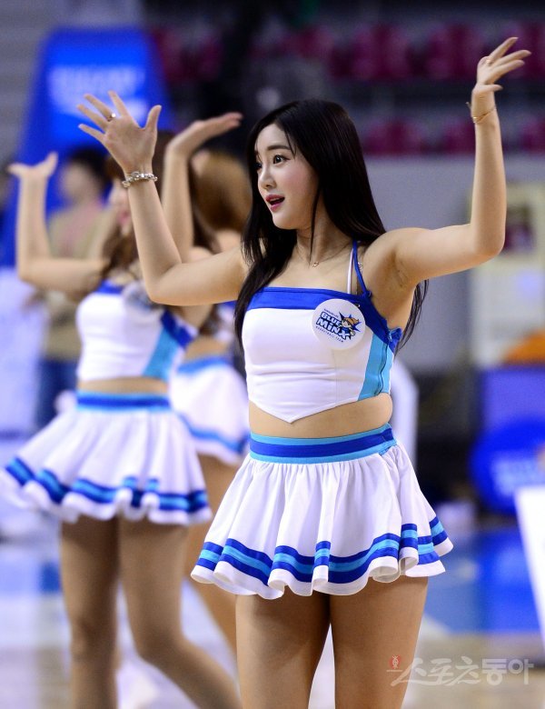 17일 경기도 용인실내체육관에서 열린 ‘신한은행 2017-2018 여자프로농구’ 용인 삼성생명과 청주 KB의 경기에서 삼성생명 치어리더가 화려한 공연을 선보이고 있다.
