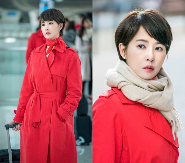 사진 속 김선아는 승무원으로 완벽 변신한 모습이다. 승무원복을 입고, 캐리어를 끌며 공항에 홀로 서 있는 것. 강렬한 레드컬러의 유니폼과 스카프, 깔끔하고 스타일리시한 숏컷헤어, 생기 있는 붉은 입술 등이 절묘한 조화를 이루며 ‘승무원 김선아’의 매력을 뚜렷하게 각인시킨다.