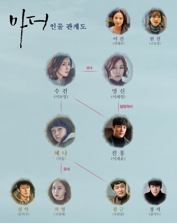 24일 첫 방송 예정인 ‘마더’는 차가운 선생님(이보영 분)과 엄마에게 버림받은 8살 여자 아이(허율 분)의 진짜 모녀가 되기 위한 가짜 모녀의 가슴 시린 러브스토리. 이 가운데 이보영-허율을 둘러 싼 얽히고 설킨 인물들이 모두 담겨 있는 관계도가 공개돼 첫 방송에 대한 기대를 한껏 높이고 있다.