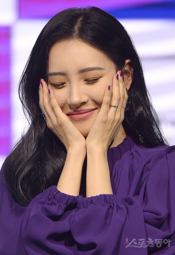 가수 선미가 18일 서울 강남구 라마다호텔 그레이스 가든홀에서 열린 싱글앨범 ‘주인공’ 발매 기념 쇼케이스에서 포즈를 취하고 있다.