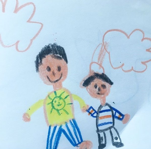 사진은 개코 아들인 태우 군의 작품을 찍은 것으로 알록달록한 귀여운 그림 솜씨가 눈길을 끌었다.